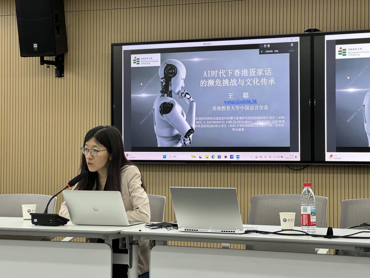 齐冲老师分享完之后,王聪老师为大家介绍了一种来自中国南海疍民社群使用的跨境严重濒危语言——香港疍家话。疍家话具有极高的文化人类学价值,作为海上丝绸之路的重要语言遗产,它不仅承载着疍民独特的海洋生活智慧、民俗传统与历史记忆,更是中国与东南亚沿海国家之间长期文化交流的活态见证。王聪老师认为,目前国内对疍家话的研究十分稀少,而疍家话的研究价值却很大,这种濒危语言的记录和保存,将具有成为全球濒危语言保护典范的潜力,不仅能展示人工智能技术在语言与文化遗产保护中的成功应用,还能为全球濒危语言的记录与复兴提供创新思路与方法。王聪老师还介绍了她与其团队构建香港疍家话多模态语料库的努力与成果,并充分肯定了保护濒危语言在文化传承、多民族和谐共存、政治生态稳定等多方面的意义和价值。