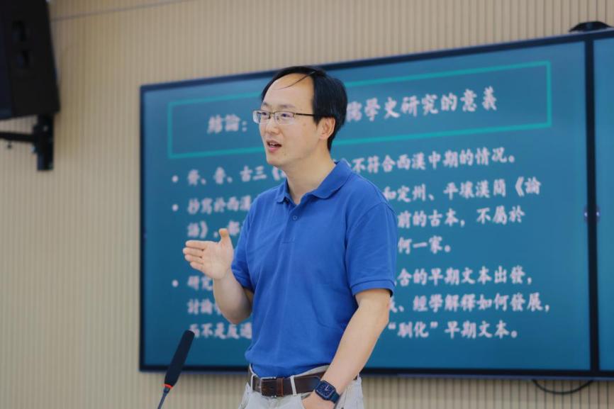 最后,陈老师总结道,齐、鲁、古《论语》三家分立并不符合西汉中期的情况,已发现的西汉中期的《论语》写本不属于上述三家的任何一种。陈老师提醒大家,在历史研究中,应从早期文本的实际出发,切不可强行以后世观念“驯化”早期文本。同时指出,需注意思想与思想史研究的区别:思想研究在于创造性阐发,而思想史研究则在于澄清思想的历史发展脉络。
