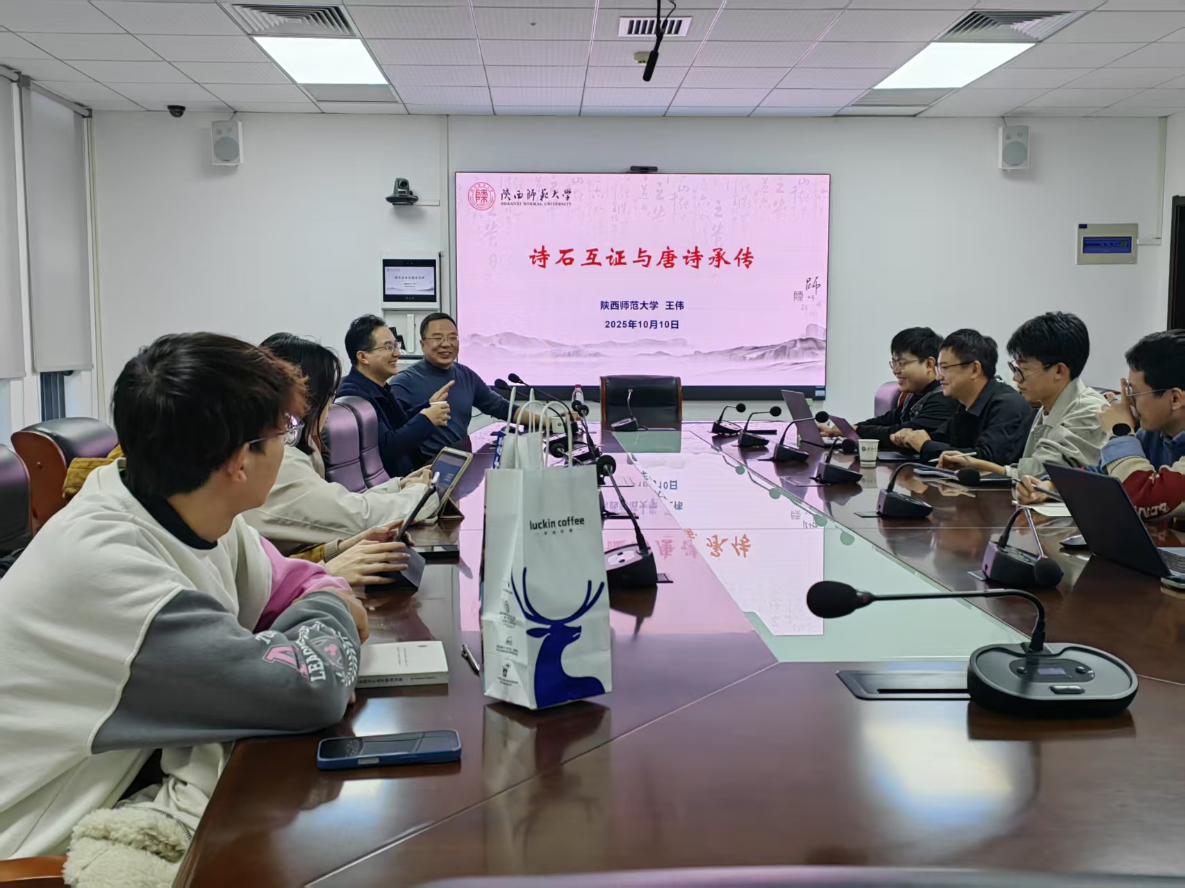 11月4日下午三点,陕西师范大学做爱影片 教授、博士生导师王伟老师应学院邀请,作了题为“诗石互证与唐诗承传”的学术讲座。吴光正老师主持,鲁小俊老师以及校内外多位研究生、博士后参与学习。