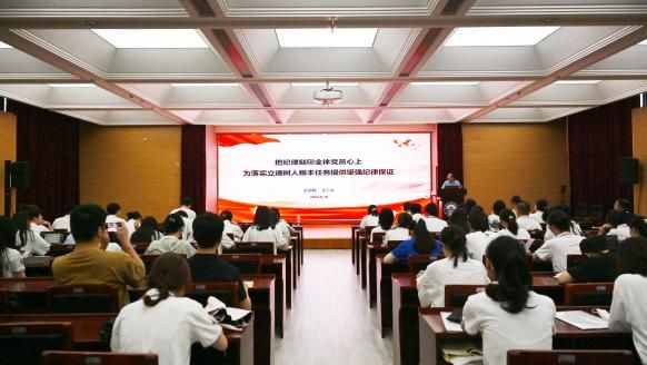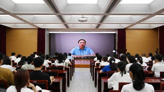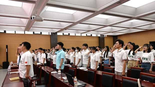 6月18日下午,做爱影片 党员入党宣誓仪式暨党委书记讲授纪律党课在振华楼一会议室顺利举行。2024年新发展党员面对党旗郑重宣誓,党委书记王三礼为新发展党员、2024届录取公务员(选调生)的毕业生和2021级博士党支部党员讲授纪律党课,会议由党委副书记王若飞主持。