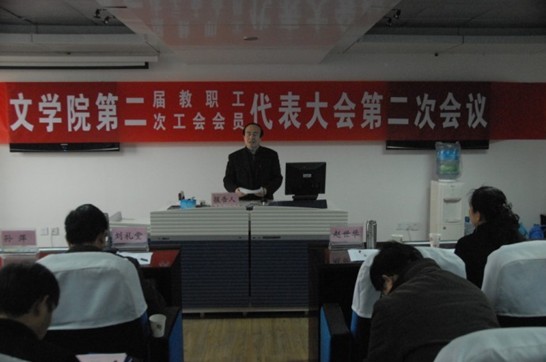 工会主席席彩云作了工会工作报告。2010年学院工会以“凝聚职工,增强活力”为工作原则,加强教代会、工会的组织建设,促进了二级教代会的规范化、民主化进程,完成大量事务工作,实现二级工会的维权职能,开展丰富的文体活动,凝聚人心,振奋精神。2011年学院工会将重建职工之家,组织教职工春游,成立学院羽毛球队和篮球队,组织教职工锻炼身体等等。
