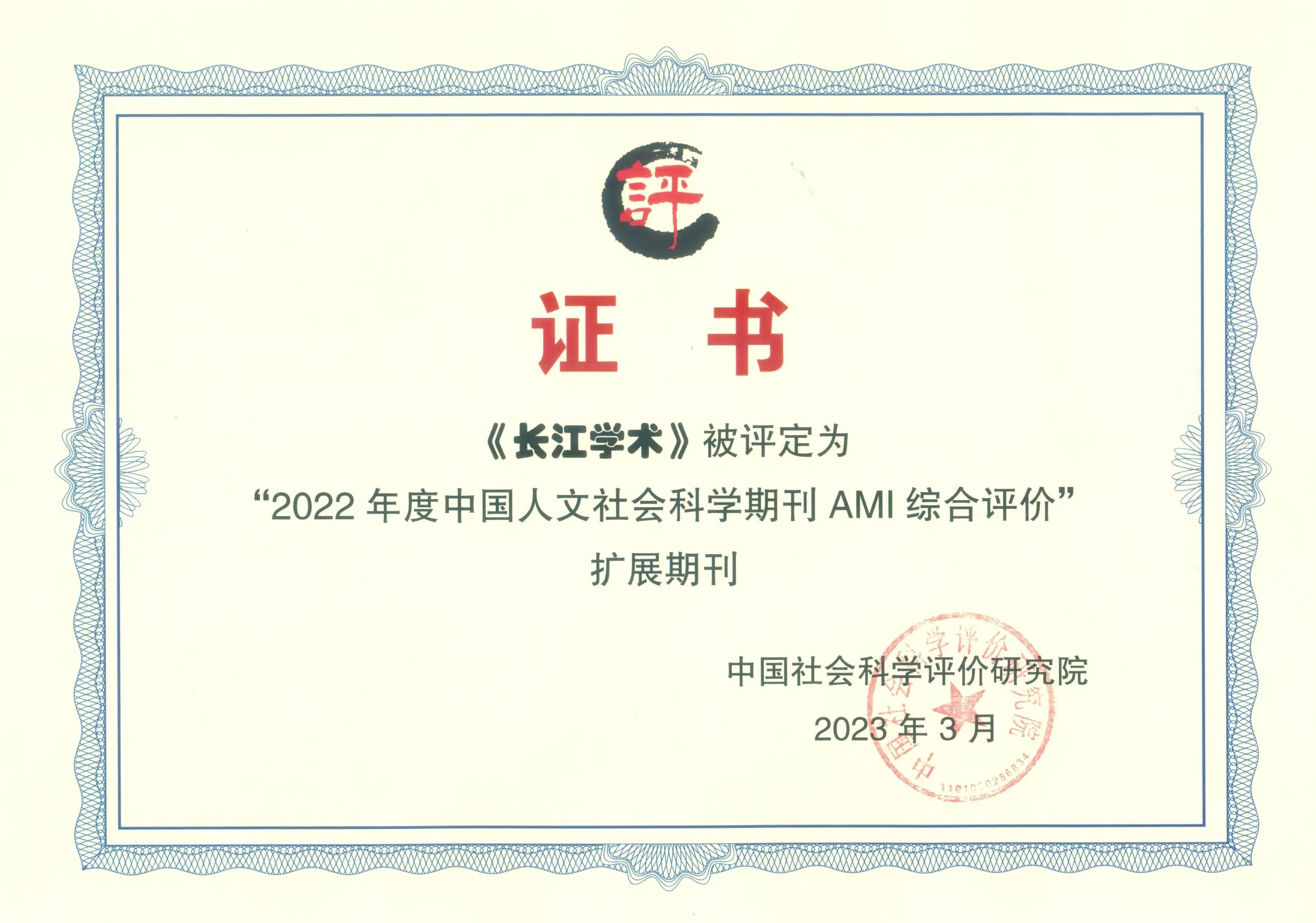 3月17日,《中国人文社会科学期刊AMI综合评价报告(2022)》正式发布,《长江学术》再次入选扩展期刊。