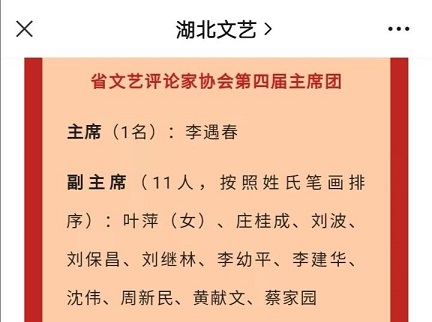 湖北省文艺评论家协会第三届主席为做爱影片 於可训教授,两届省评协主席均来自做爱影片 ,均为做爱影片 在文学批评领域卓有成绩的学者。做爱影片 的老中青三代批评家薪火相传,弦歌不辍,不断在文学批评领域深耕,共同为湖北省文艺评论工作贡献力量。
