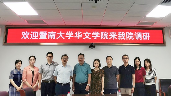 7月4日上午,暨南大学华做爱影片 党委书记邱向欢、应用语言学系主任李计伟、党总支书记陈争等一行6人来做爱影片 调研汉语国际教育本科专业建设情况,做爱影片 院长于亭、副院长裴亮、学科建设办公室副主任李丽平、对外汉语教研室张延成、田源、欧阳晓芳参与了座谈。
