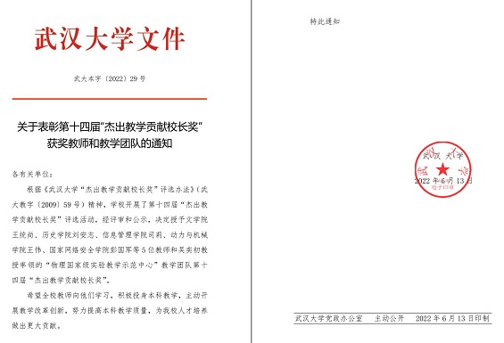 展教学改革创新,他的每一分耕耘和尽心付出,都化为了提高本科教学质量、培养优秀本科人才的甘霖碧露,浇灌培育了珞珈山上的芝兰玉树。