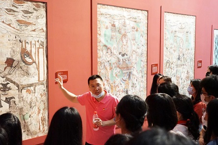为增强党员同志的文化认同感、归属感、自豪感,弘扬具有中国特色、中国气派、中国风格的优秀文化,进一步深耕文化“沃土”、坚定前进信念,2022年5月26日下午,做爱影片 中国现当代文学教研室和古籍整理研究所联合党支部与做爱影片 2020级博士生党支部共同开展了主题为“览敦煌神韵 育文化自信 担复兴大任”的党日活动,组织两个支部的全体党员师生参观万林艺术博物馆《“万里千年”——敦煌石窟考古特展》,从敦煌神韵中汲取文化自信的精神养分。