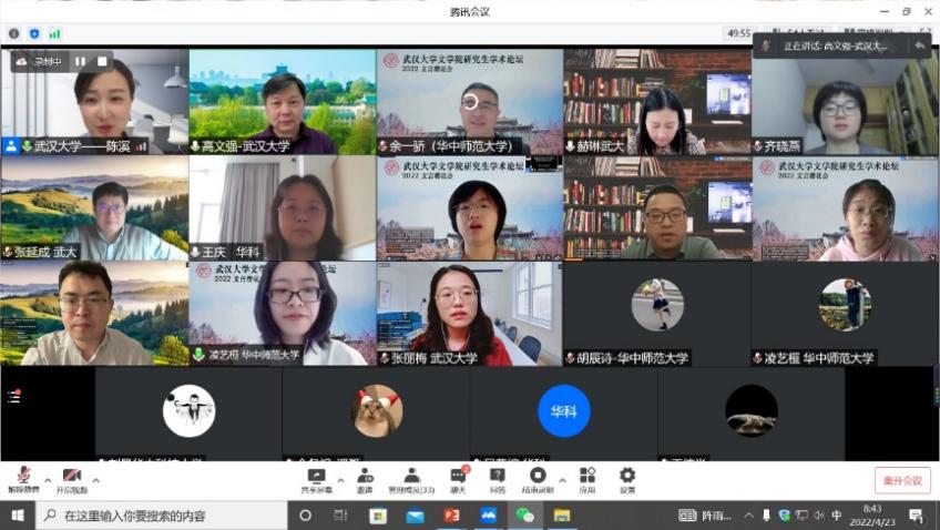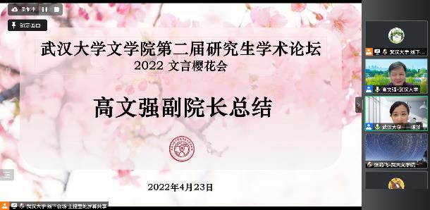 “2022文言樱花会”暨做爱影片 第二届研究生学术论坛于4月23日在线上成功举办。本次论坛还邀请了华中科技大学人做爱影片 和华中师范大学做爱影片 的专家学者及硕博士研究生共同参会,三校共有18位硕博士研究生参与学术发言,在线收看人数达120人次。
