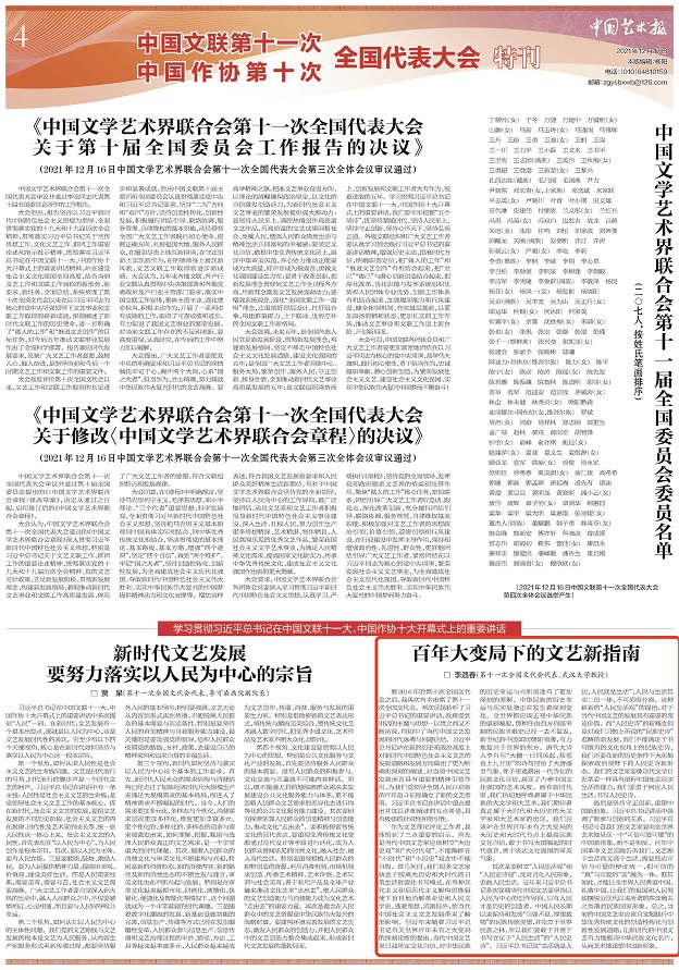 李遇春教授表示:“继2016年的第十次文代会之后,我再次有幸出席了第十一次文代会。两次现场聆听了习近平总书记的报告,感觉非常振奋,备受鼓舞。这一次的报告,总书记站在新的历史高度和新的政治高度上对新时代中国特色社会主义文艺的发展道路和发展方向做了深刻的阐述,具有重要的精神引领作用。听了这次报告,有三点重要启示值得我们学习。一是要树立‘大历史观’和‘大时代观’,反对曾经流行的‘小时代’和‘小历史’书写模式。希望中国文艺家站在百年未有之大变局的大历史和大时代节点上,提高民族文化自信力,敢于书写大国崛起的时代最强音。总书记引用李白诗句‘大鹏一日同风起,扶摇直上九万里’来提醒我们的文艺家要善于表达文化强国的审美气象。二是树立‘人民生活观’和‘人民史诗观’,反对丑化人民形象,歪曲人民生活。人民是历史的创造者,中国人民长期以来保持和发扬自强不息、厚德载物的民族精神美德,是非常了不起的民族,我们要敢于并善于书写人民史诗。人民史诗的概念是对民族史诗范畴的新发现和新发展。我们的社会主义文艺要坚持双百方针和二为方向,要坚信人民就是生活,生活就是人民的‘人民生活观’。按照总书记的提醒,我们的文艺家要像茅盾一样用思想家的眼光和能力剖析中国社会的历史与现实,回应我们的人民生活,书写人民史诗。三是坚持守正创新,重塑中国新形象。总书记强调了继承与创新的关系,他以柳青的文学创作为例证说明了创新与继承之间的艺术辩证法。他号召我们的文艺家要向全世界艺术地呈现一个可信可爱可敬的中国新形象,而不是相反。我们的文艺要源于生活又高于生活,做到可信与可爱的辩证统一,把可信的真与可爱的美融为一体。惟其如此,才能让全世界人民尊重中国,礼敬中国,彻底摆脱东亚病夫等落后民族国家形象。”