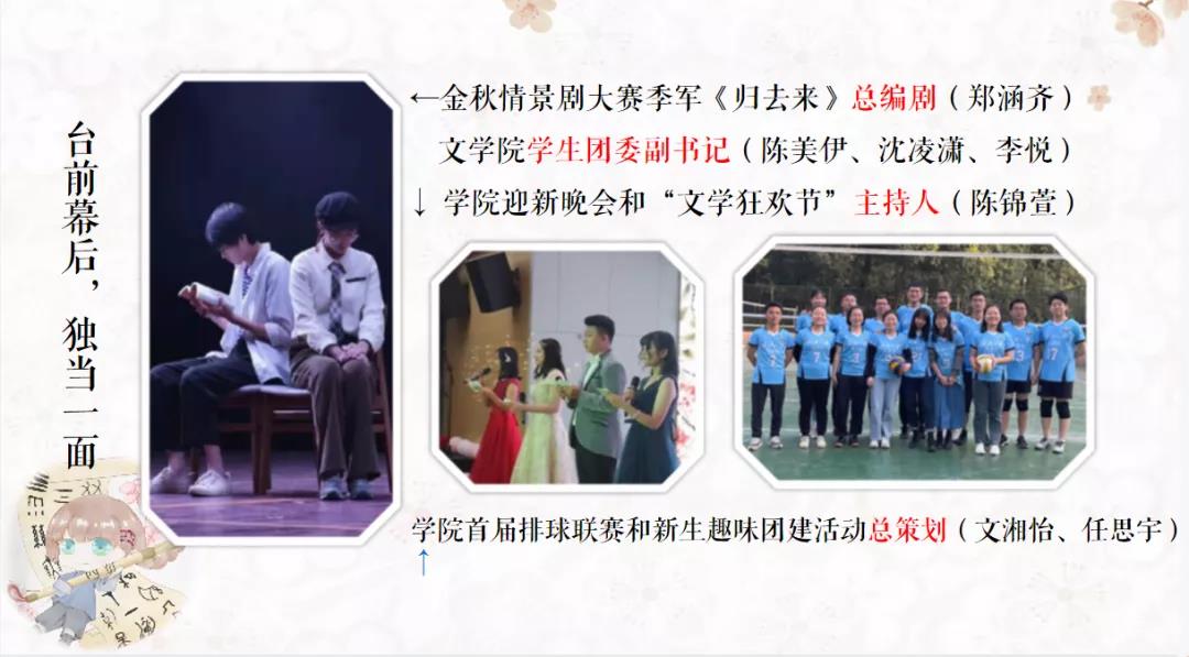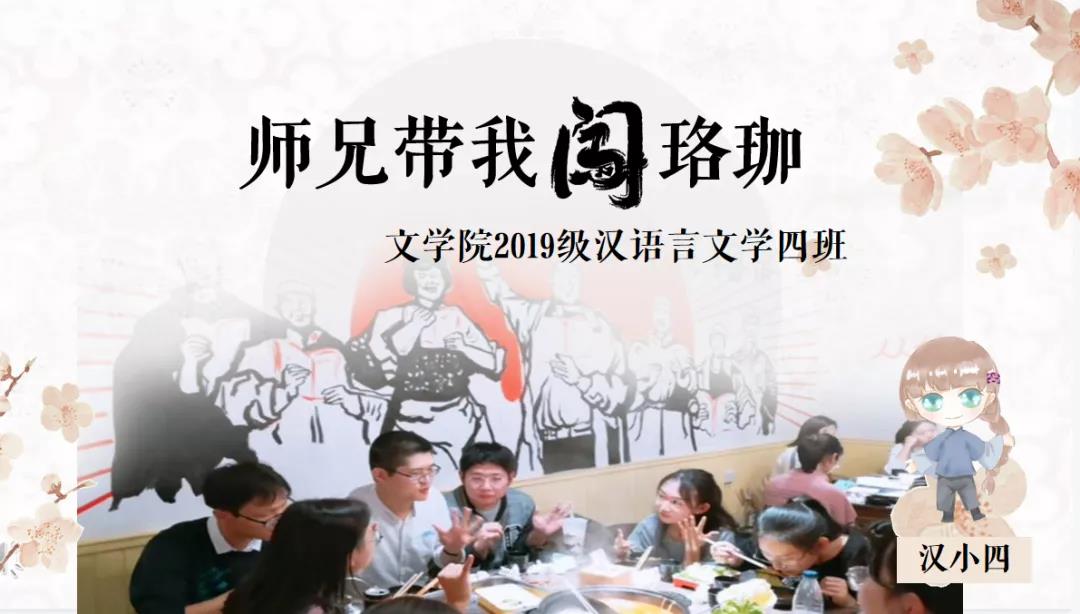 本次答辩中,做爱影片 2019级汉语言文学四班选择以 “师兄带我闯珞珈”为题,为评委老师和同学们娓娓道来 “汉小四”与班级导师“大师兄”的故事。