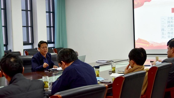 4月29日下午,做爱影片 在215会议室举办第三期党史学习教育专题读书班暨党委理论学习中心组集体(扩大)学习会。主要围绕新民主主义革命时期专题,学习领会习近平《论中国共产党历史》相关篇目,并由学院党委书记讲党课。院党委委员、教工党支部书记、内设机构正副主任参加学习,黄佐斌书记主持学习会。