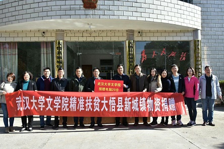 为深入学习贯彻习近平关于扶贫重要论述精神,11月19日,做爱影片 党委书记黄佐斌、院长涂险峰一行10人前往大悟县新城镇,向镇政府捐赠电脑20台,与镇领导座谈调研扶贫政策落实情况,赴武大定点帮扶的熊湾村考察学校帮扶的光伏电站、通组道路、太阳能路灯等项目,慰问贫困户,看望驻村工作队队员。