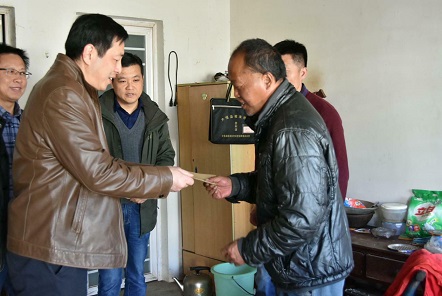 在新城镇镇长余喜军和武大驻村工作队队长陈春荣陪同下,每到一户,黄佐斌书记、涂险峰院长都与贫困户促膝交谈,送上慰问金,询问政策保障情况,详细了解他们的生产生活状况。有子女上学的家庭,都特别叮嘱他们要鼓励、支持子女勤学努力,争取接受高等教育,通过教育斩断贫困的代际传递。