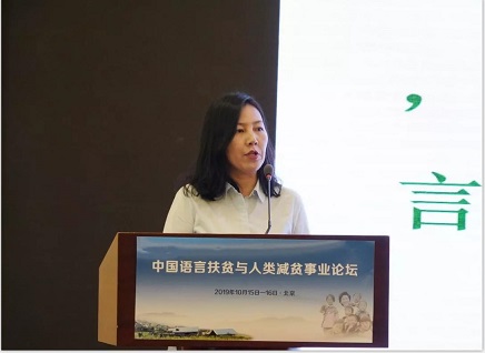 10月15-16日,中国语情与社会发展研究中心副主任赫琳教授应邀出席在京举办的“中国语言扶贫与人类减贫事业论坛”,并做了《推进能力开发的语言扶贫事业》主旨报告。本次论坛由国家语言文字工作委员会和国务院扶贫办政策法规司指导,教育部、国家语委、国务院扶贫办、国家民委等相关部门负责同志,专家学者,相关省份语言文字工作部门负责人及企业代表共120人出席会议。