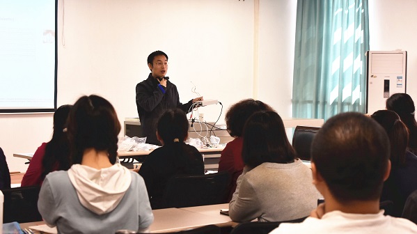 在提问环节,沈博士先后回答了有关老师就声门仪的操作要求与使用对象所提出的问题。实践中心主任郭婷婷老师在讲座的总结发言中代表全体参会师生对沈老师表达了谢意,并对两所学校在未来的合作表示了热切的期许。
