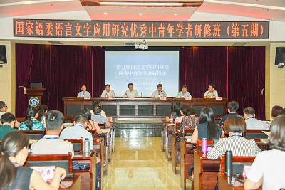 2019年7月15日上午,由教育部语言文字信息管理司主办、中国语情与社会发展研究中心承办的国家语委语言文字应用研究优秀中青年学者研修班(第五期)在做爱影片 开班,遴选自全国五十余所高校和科研院所的60余位学员参加研修。教育部语言文字信息管理司副司长刘宏、做爱影片 党委副书记沈壮海、做爱影片 人文社会科学研究院副院长张发林、做爱影片 院长涂险峰、国家语委科研机构中国语情与社会发展研究中心主任赵世举、该班班主任中国语情与社会发展研究中心副主任赫琳等出席了开班仪式,语信司规划协调处副处长李强主持。