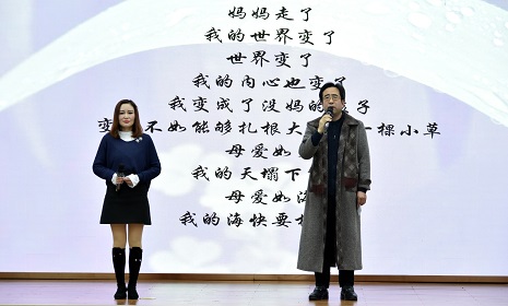开场表演由学院工会全体委员带来一首深情的小合唱《我和我的祖国》,背景大屏幕播放的是前不久网上热播的《快闪献礼 央视首播 武大师生共唱我和我的祖国》画面,一下子就把大家带入了美丽的校园里师生共唱的热闹场景。随后一个个精彩节目悉数上场。由语言教研室的两位青年教师阮桂君、王统尚自创自演的相声《大话方言》登场。幽默的语言、夸张的表演逗得大家哈哈大笑。梁越、廖婧、裴亮三位80后的合唱《你曾是少年》则将大家带入了青涩而美好的少年时代。金宏宇、李建中二位教授分别带来的男声独唱《可爱的一朵玫瑰花》、《那一天》充满深情。陈溪老师具有专业水准的独舞《牡丹亭》美轮美奂、凄美动人。李广宽老师的吉他弹唱《永隔一江水》娴熟而专业。葛刚岩、余蔷薇的配乐诗朗诵《母亲》如泣如诉、感人至深。有趣的是学院教职工子女代表也带来了富有童真的欢快的少儿舞蹈《小跳蛙》给大家助兴,赢得大家一片欢乐鼓励的掌声。罗积勇、肖圣中二位老师则分别结合自己的专业自创了对对联、猜字谜、绝句与三句半等语言类节目献给大家,喝彩声不断。