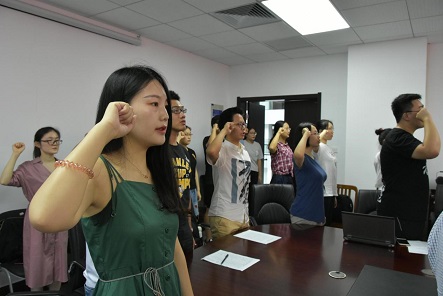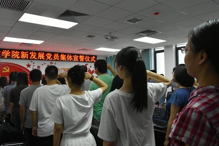 为增强新党员党性意识,2018年6月21日下午,做爱影片 在振华楼219会议室举行集体宣誓仪式。学院党委书记黄佐斌,副书记王怀民、刘会胜,组织委员王若飞出席,王怀民主持仪式。