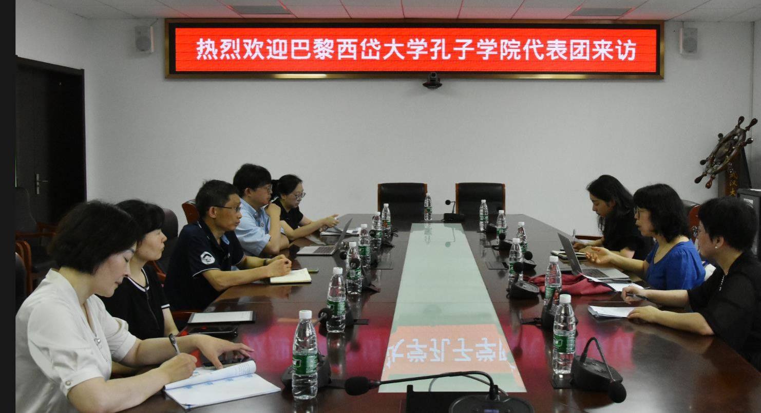 6月28日,法国巴黎西岱大学孔子学院法方院长张香筠、中方院长刘萍一行访问做爱影片 。做爱影片 副院长程芸、裴亮会见来宾。参加会谈的还有国际交流部、做爱影片 相关工作人员。