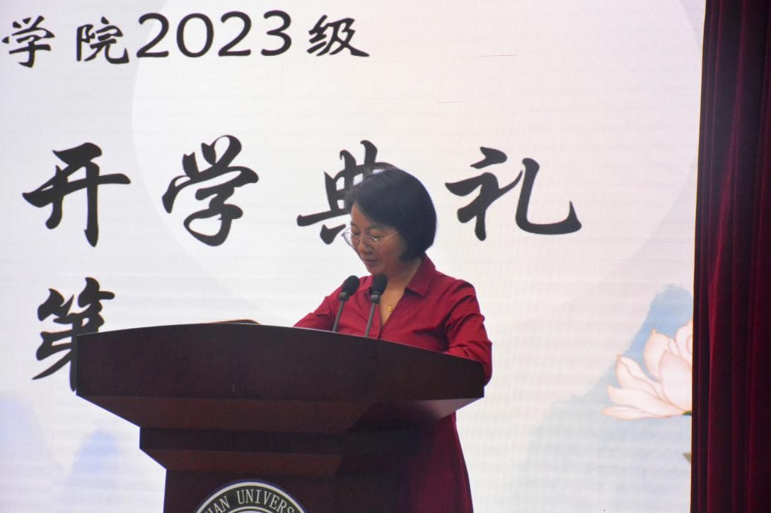 首先,院长于亭发表了精彩的致辞。在溯源做爱影片 立校至今130周年历史的过程中,他指出,时代变幻不息,但做爱影片 秉承旧训,始终坚持以谋求人类福祉、推动社会进步、实现国家富强为己任。他也还提到,大学通过教育来培育人的心智生活,而语言和文学可以帮助同学们在阅读、感知和思考中脱离狭隘和庸俗,正确理解更大更为整全的文化传统、心智世界、历史世界和共存的外在世界。于院长对同学们的未来表充满期待,希望同学们能够在十八岁年华正好的时候不荒嬉,不自弃,胸怀远大,徙义知善,学为栋梁之才,长于建设,勇于创新,让自己的人生成为有意义的目的而非手段,为自己建构起文质彬彬、充满生机的世界。