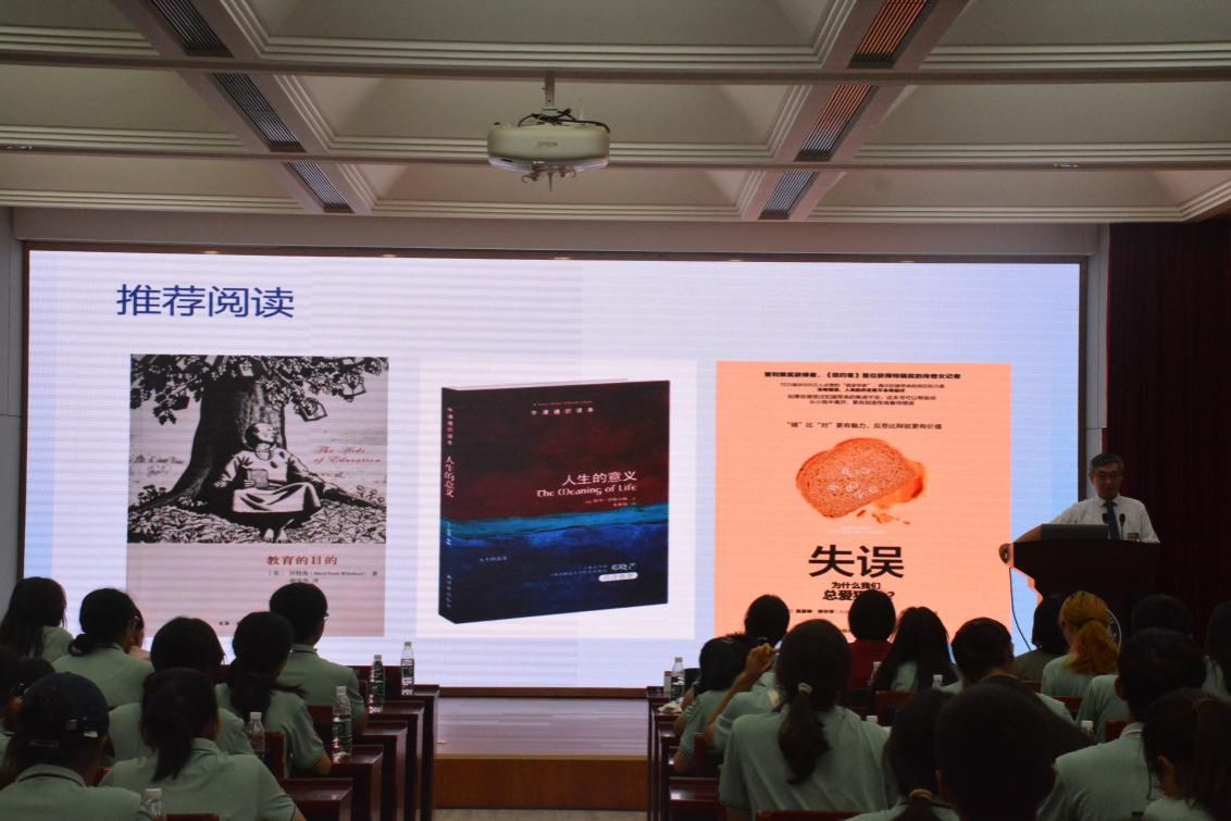 针对“阅读”这一关键词,于院长强调,同学们要培养持续阅读和主动阅读的习惯,通过阅读与伟大的作品对话,在有难度的阅读中提升自己的心智,在孤独的阅读中实现优质的自我教育,避免低水平的阅读、低劣的语言材料带来的“阅读之害”,用更高的心智生活来对抗大众文化中浅层、粗糙的愉悦。最后,于院长向同学们推荐了一些经典书目,并借用黑格尔的名言与新生共勉:“人应尊重他自己,并应自视能配得上最高尚的东西。”