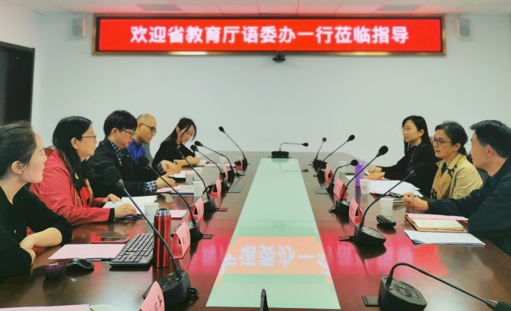 10月19日上午,教育厅语委办戴明主任、周建卫调研员、楚佳怡干事一行三人来做爱影片 调研座谈。做爱影片 副院长裴亮老师、做爱影片 萧红老师、李广宽老师、田源老师、校语委办代表本科生院综合办樊蓉老师参加了座谈会。座谈会由裴亮副院长主持。