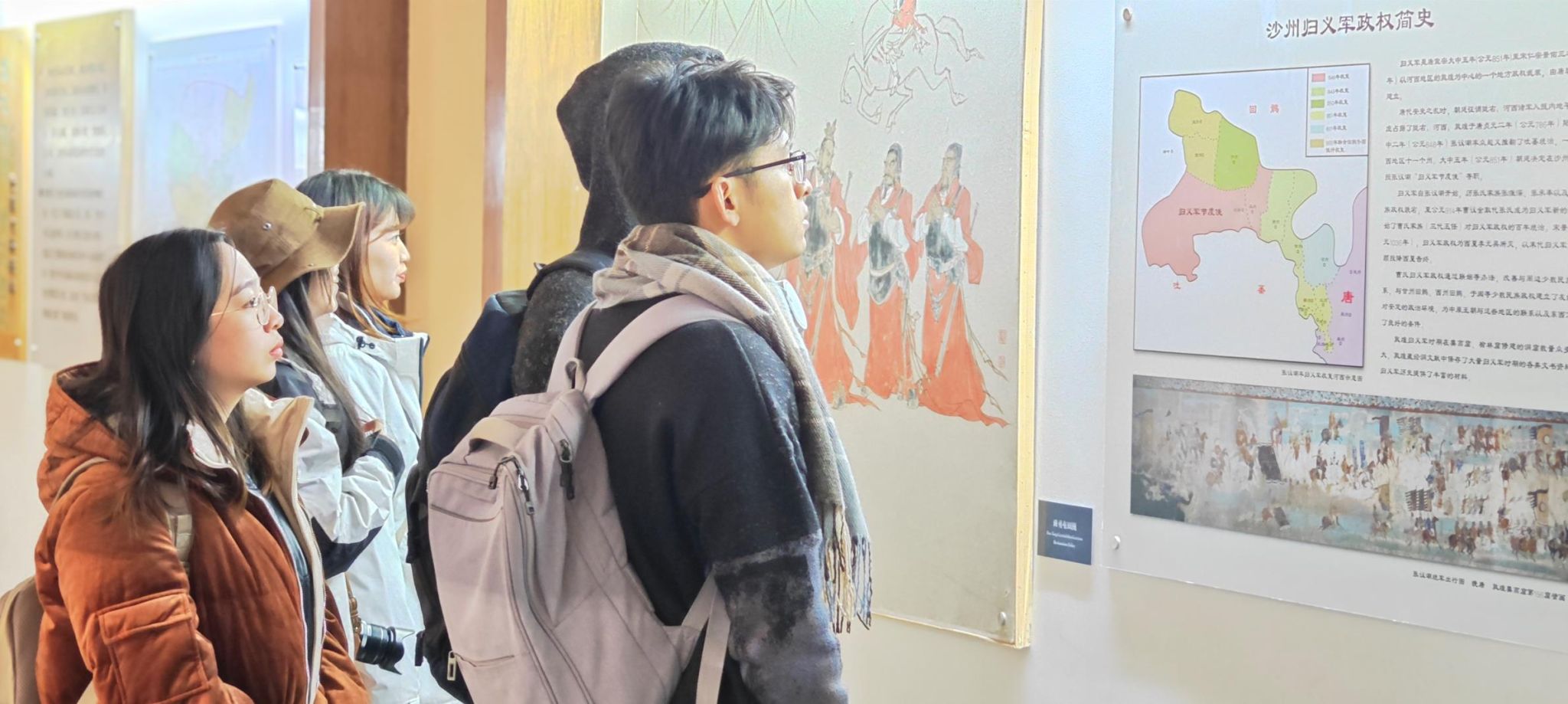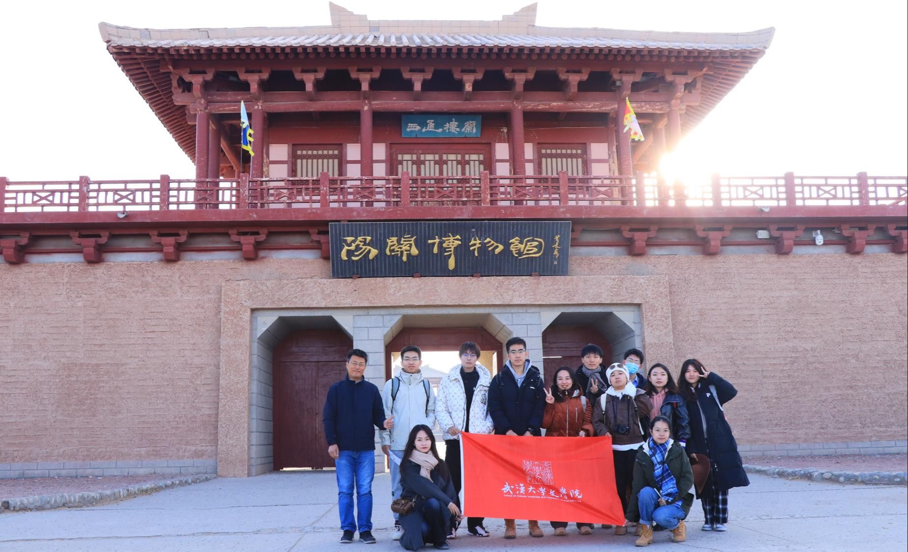 同学们从“雅丹”这一名称了解到背后承载着上百年历史变迁,不免感慨,这片土地上也曾行走着各族各国的商队,两千年前出关前往内亚的商旅或许也走在这片地貌中,遥望玉门关。返回武汉的路途中,同学们又参观了敦煌博物馆和甘肃省博物馆。