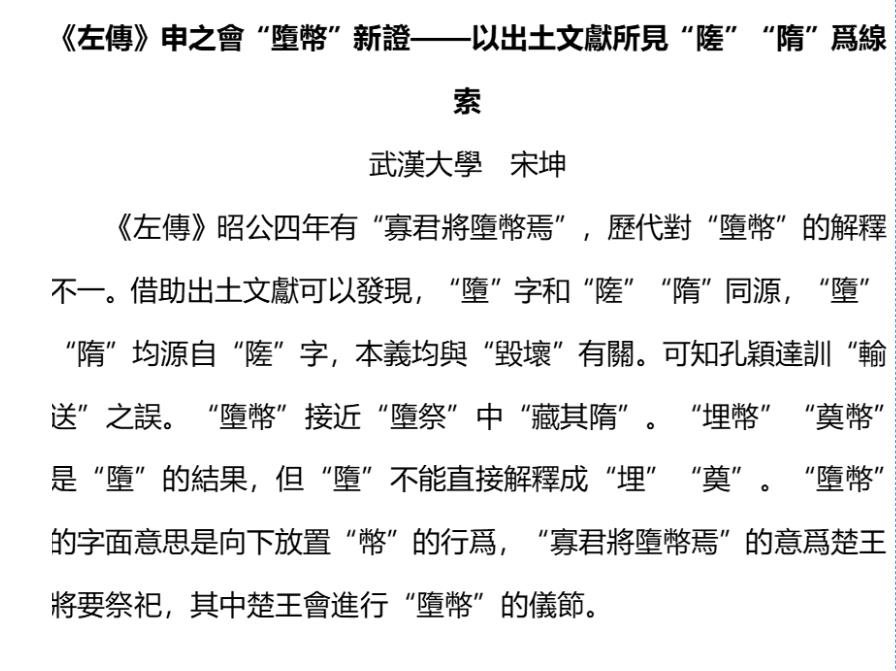 2020级本科生宋坤(现为做爱影片 古籍整理研究所硕士研究生)获得二等奖,论文题目《〈左传〉申之会“堕币”新证——以出土文献所见“隓”“隋”为线索》;