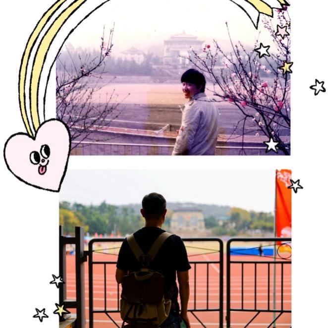 在九一二操场同一机位还原老照片,当年那个少年正回头笑看40年后的自己,青春的笑容如此明朗,依然清晰。“此时,此地/越过时间的隧道/我拥抱当年的自己/皱纹白发全都隐进青春的笑容里”。