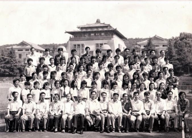 “永是珞珈一少年”是这个班级何五元同学的原创“金句”,不远处的碑刻《珞珈赋》也系他所作,那是1985年在沈祥源老师《古代汉语》课上一气呵成的一篇随堂作业。“珞珈的一山一水,一花一树,四时变化,人文气象,最要紧的是那个年代自由向上的气息,无时无刻不激荡着我的心魄,让我感到有一股诗意的冲动要喷薄而出。”2013年校庆时,学校请何五元将原文稍作修改,刻于校门广场,十余年来为无数师生、校友和游人吟诵、赞叹。