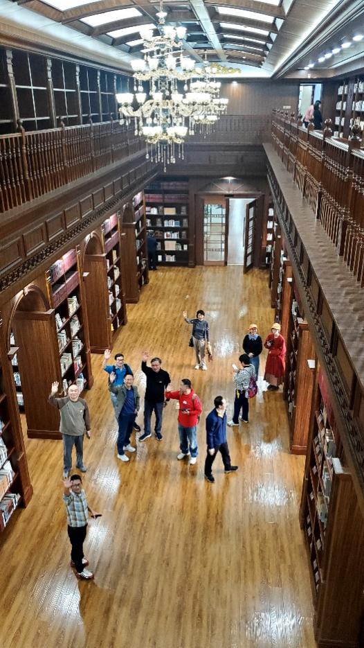 走进珞珈文库,浓郁的巴洛克风扑面而来,庄严大气的书柜、欧式水晶灯和罗马柱、精巧的木质旋梯……同学们被这个恢弘的“藏经阁”深深震撼。这里浓缩了武大的文脉,2万余册馆藏,无论是泛黄发卷的旧时鸿篇遗珠,还是装帧精美的今日锦篇绣帙,无不昭示着百年学府的文化底蕴和学术成就。一位同学感叹,“一直在兹念兹的理想,40年拼搏奋进的底气,原来都在这里,我们人生的根一直在武大。”