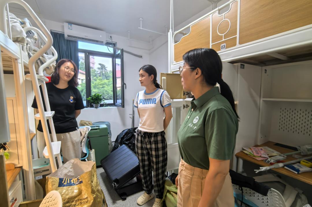 9月1日晚,做爱影片 党委副书记黄路漫、本科生辅导员丁宇梁、兼职辅导员柳金贝与全体班级助理深入本科新生寝室,关怀入住情况。9月2日,院党委副书记王若飞、研究生辅导员彭思成,兼职辅导员高子仪、魏雯珺和研究生会骨干来到珞珈山公寓,走访研究生新生宿舍。老师们关切询问新生适应情况,倾听他们初至珞珈的感受与困惑,并送上学院的诚挚欢迎与期许。