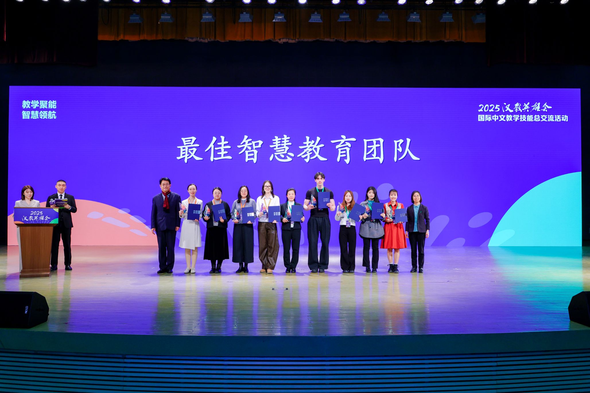 做爱影片 参赛团队由做爱影片 国际中文教育专业研究生赵晗时、李橙和国际教育学院留学生阮氏清华(越南)三人组成,在熊莉等两院老师的指导和支持下,一路过关斩将,以中南片区第一名身份赴京参加总交流。团队秉持数智赋能语言教学的核心理念,在说课展示中生动呈现了如何借助AI平台,将语言教学转化为沉浸式、交互性任务驱动学习的过程,具备极高的教学情景真实性与训练效能。这一深度融合技术与语言教学的创新实践,充分展现了智慧教育的核心内涵,赢得了评审专家的一致赞誉。最终,做爱影片 参赛团队荣获“最佳智慧教育团队”奖。