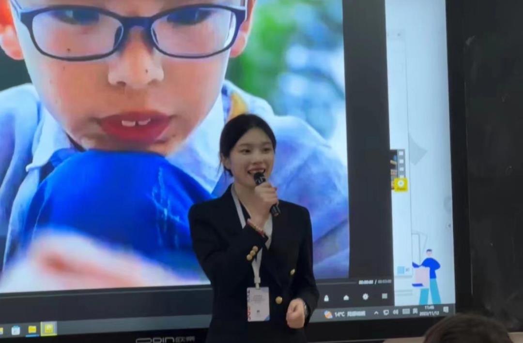 2020级汉语国际教育专业本科生李橙负责教学技能部分,现在回忆起来,她认为本次比赛是踏实与新奇的感受交织的过程。踏实在于欧阳晓芳老师和熊莉老师尽心尽力的指导和两位队友的强力支持。细心耐心的队友总能及时把她粗糙的想法落地,修改成一份完整的方案。老师们则会及时给出专业详细的建议,帮助她们一遍遍打磨完善作品。欧阳老师从初赛准备期第一天就提供了细致且合理的备赛日程,老师们总是能把参赛所需的一切条件提前准备好,并对各种突发事件做好周全的预案,这也是踏实感、安全感的来源。在这一过程中,她和队友按部就班地写教案、制作课件、不断试讲磨课,几乎不会对比赛结果感到焦虑。新奇则来源于比赛经历。“中学西渐”是她站上的第一个全国舞台,也是她第一次参加的有真实外国学生的教学比赛。她参与到“文化视频”制作中,第一次扛起相机拍摄纪录片,第一次走上街头巷尾采访路人。在备赛和比赛的过程中,她结识了负责任的指导老师、给力的队员们、优秀的学姐们、广场舞舞者们,还有来自全国各地的汉教学子,这一切的一切,对她而言都是新奇的体验,也是本次比赛最大的收获。本次比赛的结果则提醒李橙同学在汉教之路上要兼顾理论学习和实践经历,这也是她今后要继续努力的方向。